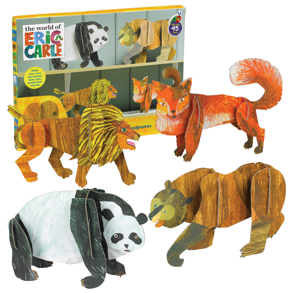 A 3D wild animal kit as illustrated by Eric Carle will get the little ones creating whilst playing in no time! The Lion, Fox, Bear and Panda are easy to assemble, made from robust cardboard and when not in role play would look great as mini sculptures in a kiddies bedroom or playroom.