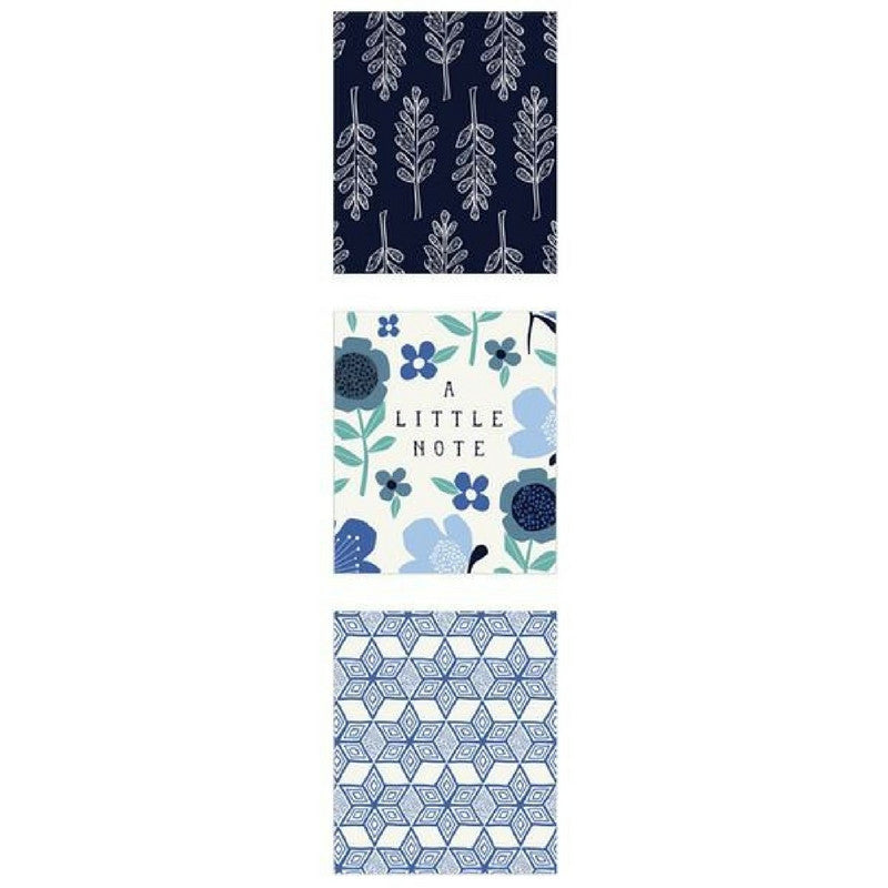A pack of 12 cards in retro style imagery in 3 assorted designs in shades of blue and white. The perfect way to send several people thank you notes or hello's. Each card is left blank inside for your own message.