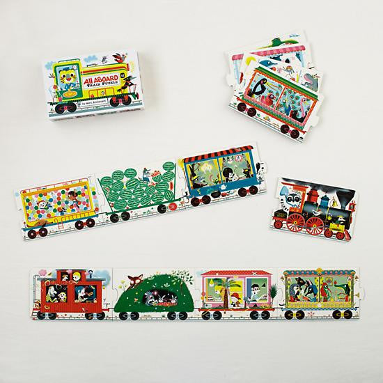 This fun train puzzle contains 12 double sided pieces that can be put together in a variety of ways. Kids will love playing with the woodland animals, aquarium animals and circus characters printed on this puzzle.