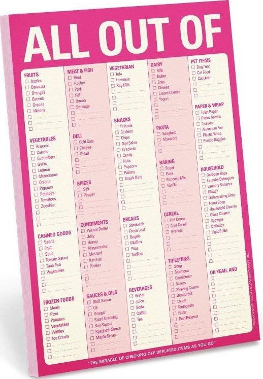 A great pad to remind you of the items you need to buy when next visiting the supermarket. The All Out of Pad comes with a magnet on the reserve so you can place it on your fridge and mark off items as and when you run out. Very handy for those of us leading busy and often forgetful lives.