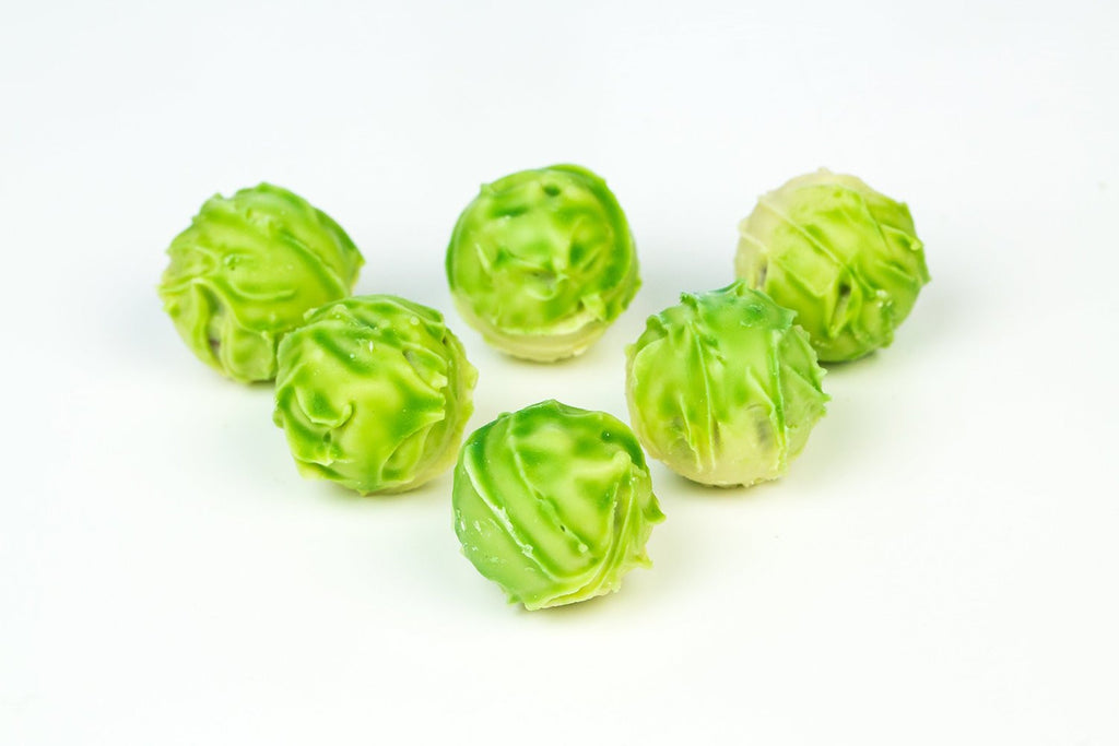 These are the kind of sprouts that everyone loves, the kind of greens that your kids will insist on eating (not one of your five a day, sorry to say). Chocolate Brussels Sprouts Truffles are soft centred with orange milk chocolate and encased in a white chocolate shell which is shaped and coloured just like an adorable sprout. There are 8 sprouts in each chocolate box.