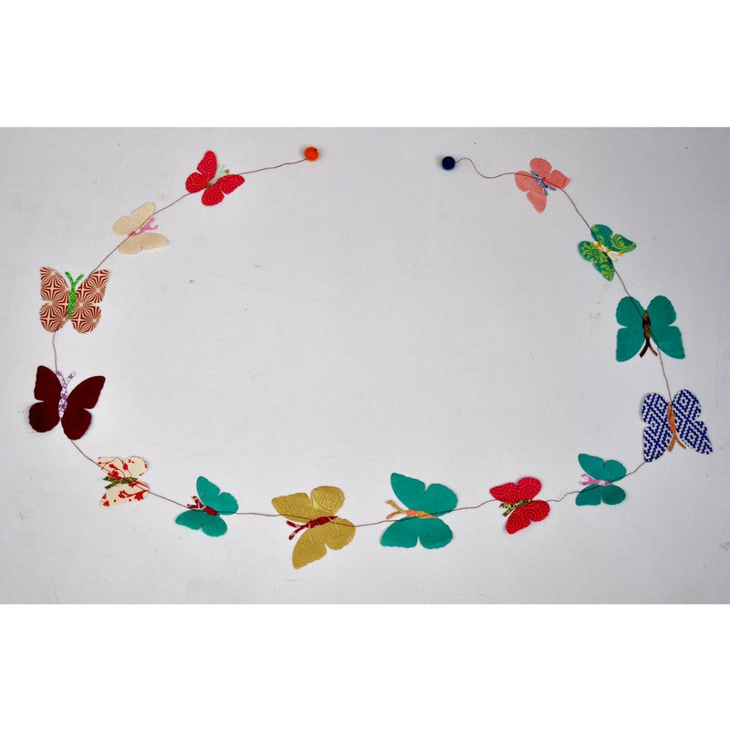 A beautiful Butterfly Paper Garland with pompom decoration at each end. Each butterfly is made from fine paper all with different designs. We think this garland would look gorgeous in a child's bedroom, playroom or hung delicately in your living room.