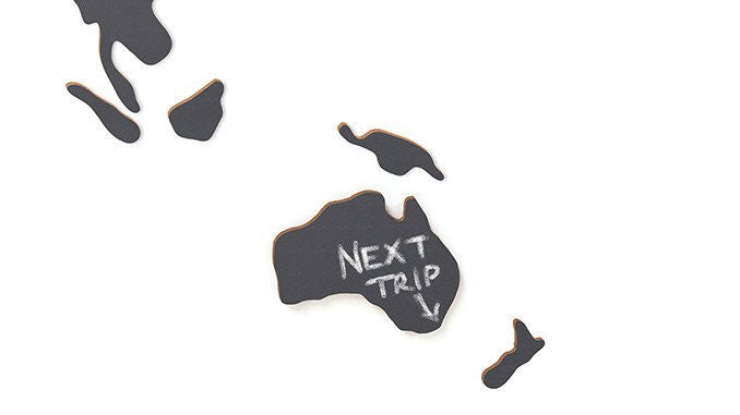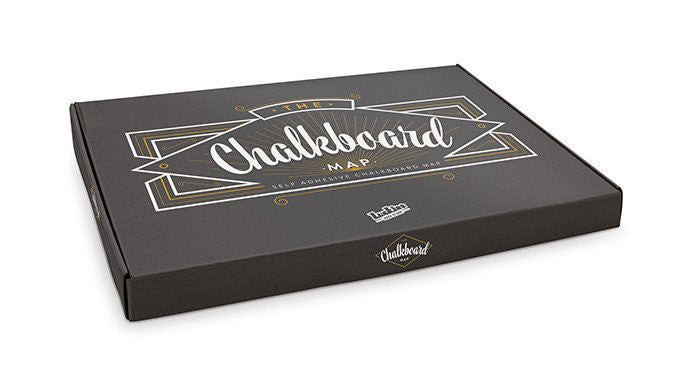 A Chalkboard World Map, perfect for travel enthusiasts and geographers. Assemble all the pieces of the world, and stick directly to a wall using the adhesive backing. Chalk sticks are provided for you to add your own references.