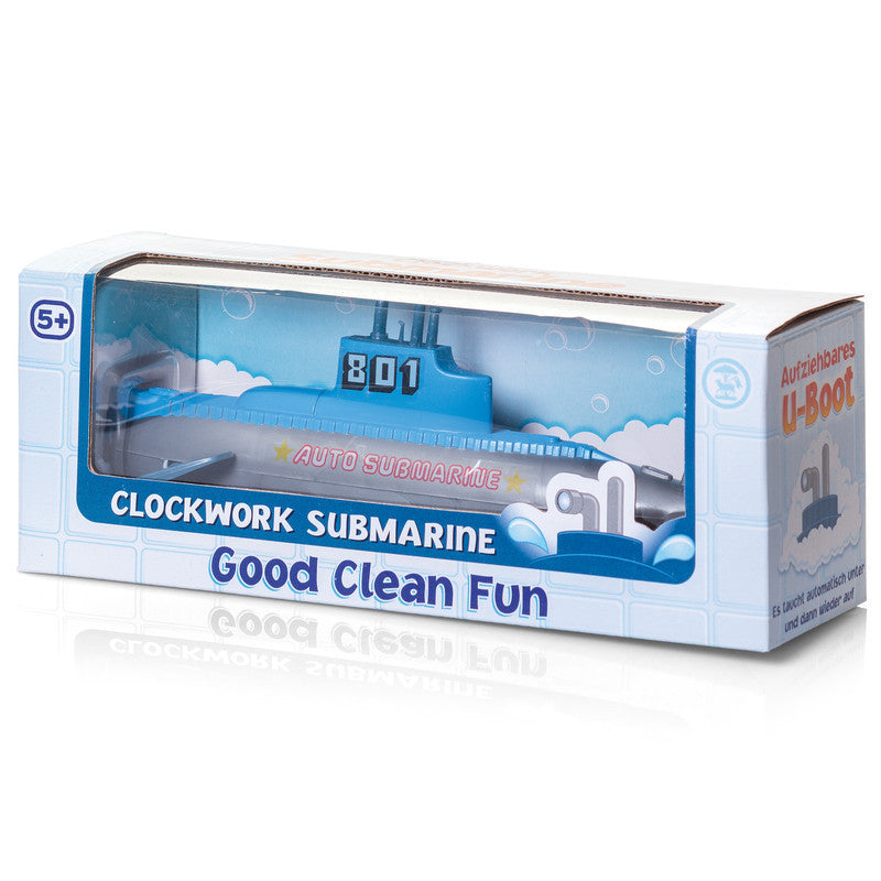 This Clockwork Submarine is perfect for bathroom play time. Simply wind up and watch as the clockwork propeller powered submarine dives and resurfaces. Would be great for pool time fun too!