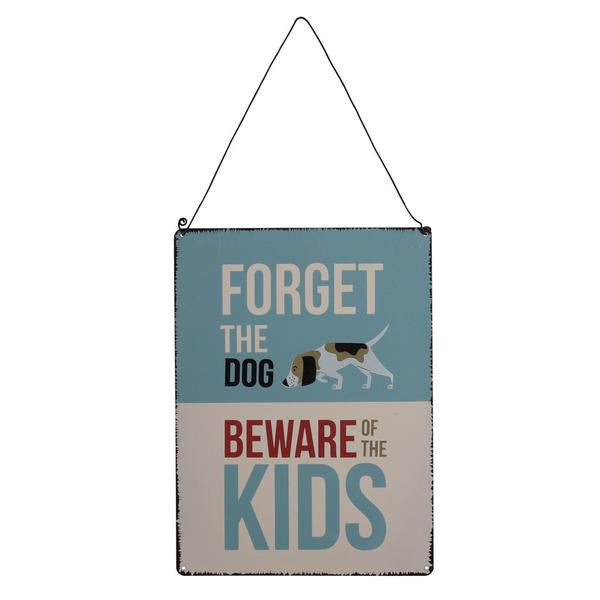 Is your dog tamer than your kids? Give guests a fair warning with this 'Forget the Dog Beware of the Kids' metal sign!