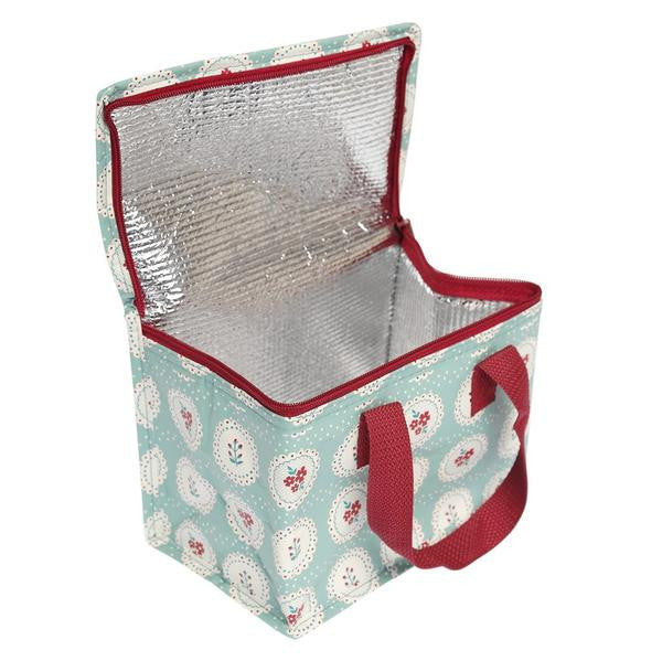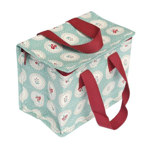 Blue Vintage Doily Lunch Bag with inner insulation to keep your lunch hot or cold. We have sold hundreds of this style lunch bag so it’s good to know they are made out of recycled plastic bottles!