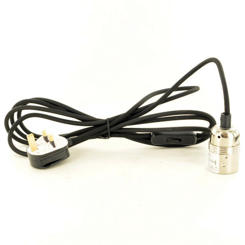 A very on trend Cable Light with black fabric braided lead and chrome coloured light bulb fitting. The cable has a UK 3 pin plug and a handy on/off switch. Please choose a bulb from our selection of vintage bulbs.