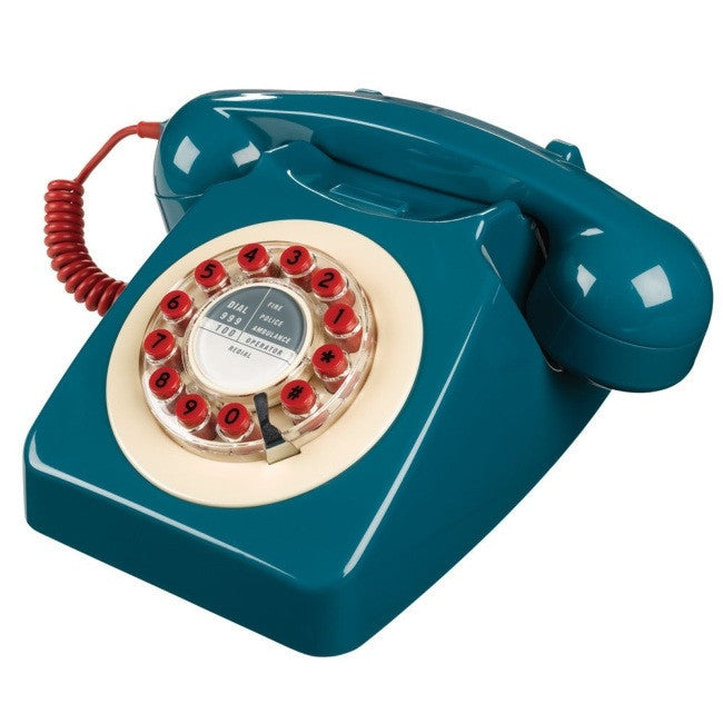 The 746 Phone in Petrol Blue is a classic British retro telephone and '60s style icon, but with push buttons instead of the classic dial. Based on the original post office model produced in 1967, Wild and Wolf have brought it up to date in a range of striking colours, this colour being petrol blue with red buttons, stylistically reminiscent of the original design. The phone plugs into a standard phone socket and also features a re-dial button.